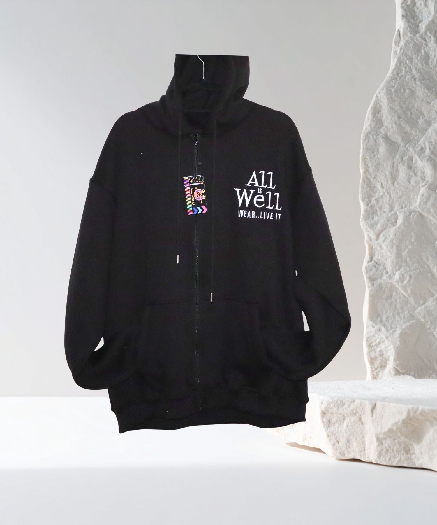 The embroidered “All Is Well – Wear It. Live It.” message adds a signature touch of mindfulness and motivation — a reminder to carry peace and positivity wherever you go.